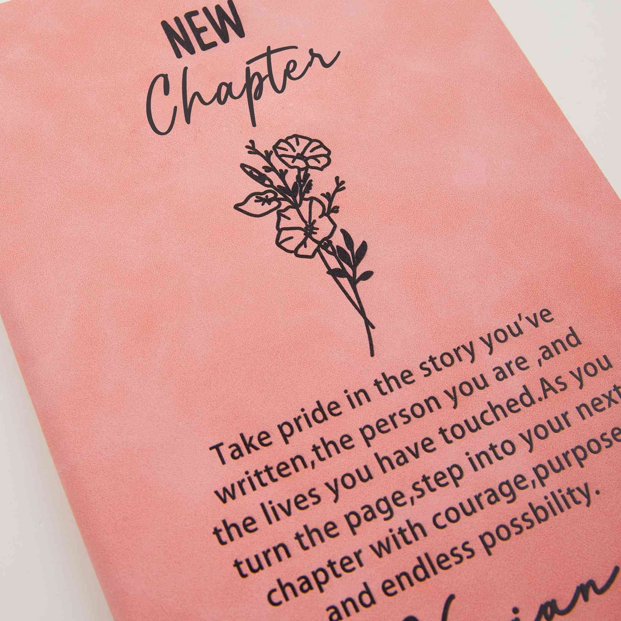 Elegant Design - This A5 leather notebook features a graceful combination of your chosen name and birth flower, representing a unique personality. The “New Chapter” design conveys encouragement and optimism, perfect for celebrating life’s next step with beauty and meaning.