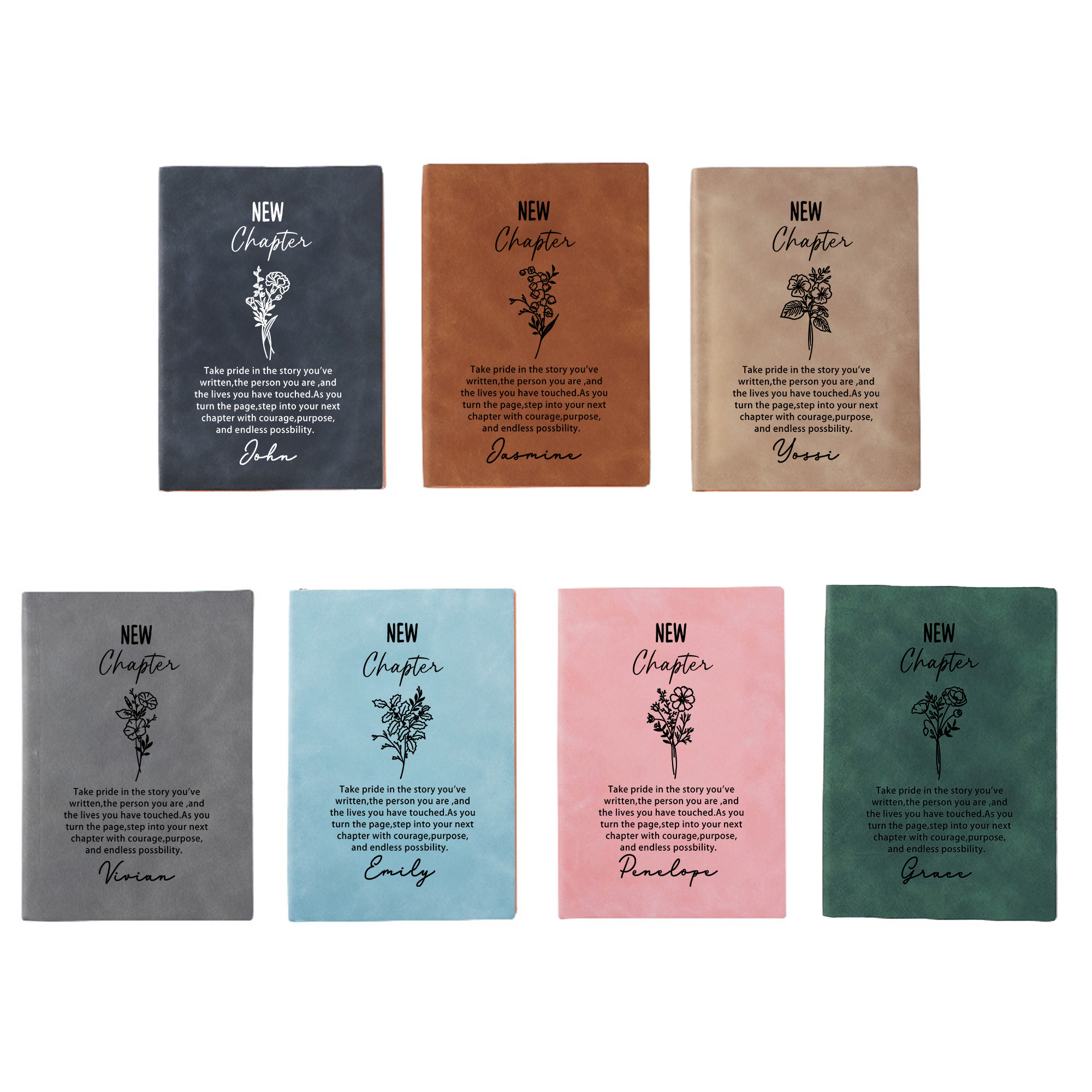 Personalized Name Birth Flower New Chapter Notebook, A5 Leather Motivational Journal, Farewell/Retirement Gift for Family/Friends/Coworkers