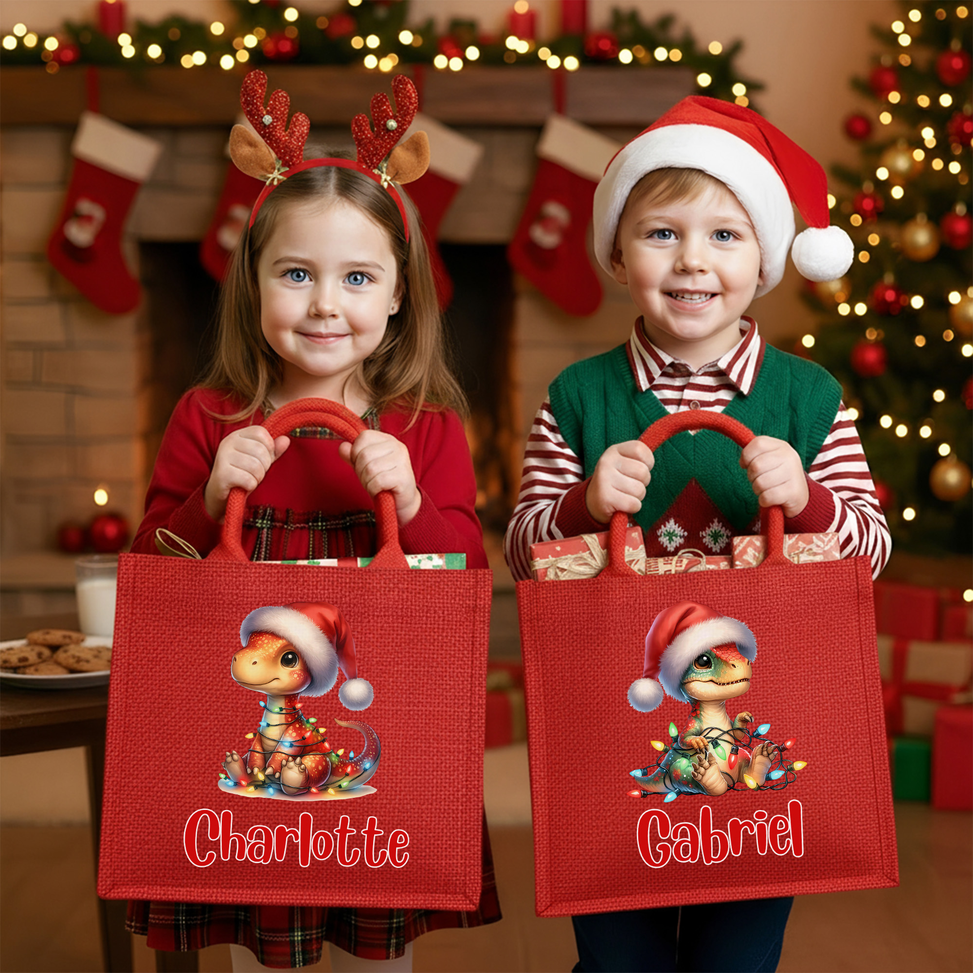 Perfect Holiday Gift - A thoughtful Christmas present for children, teens, parents, or friends. Whether used as a gift bag, stocking alternative, or festive accessory, this personalized dinosaur tote spreads holiday cheer and becomes a lovely keepsake for years to come.
